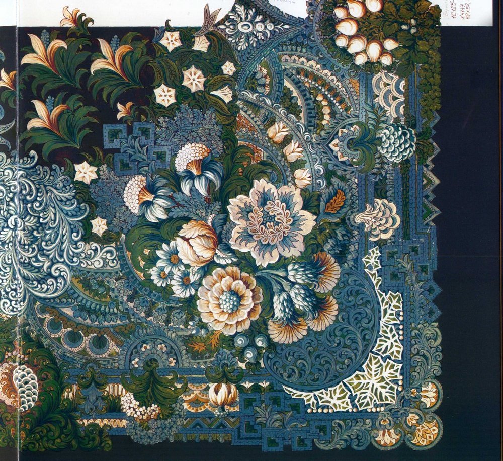 Последняя страничка с кроком платка "Над серебряной водой", 1999 г., бумага, гуашь, 74х74