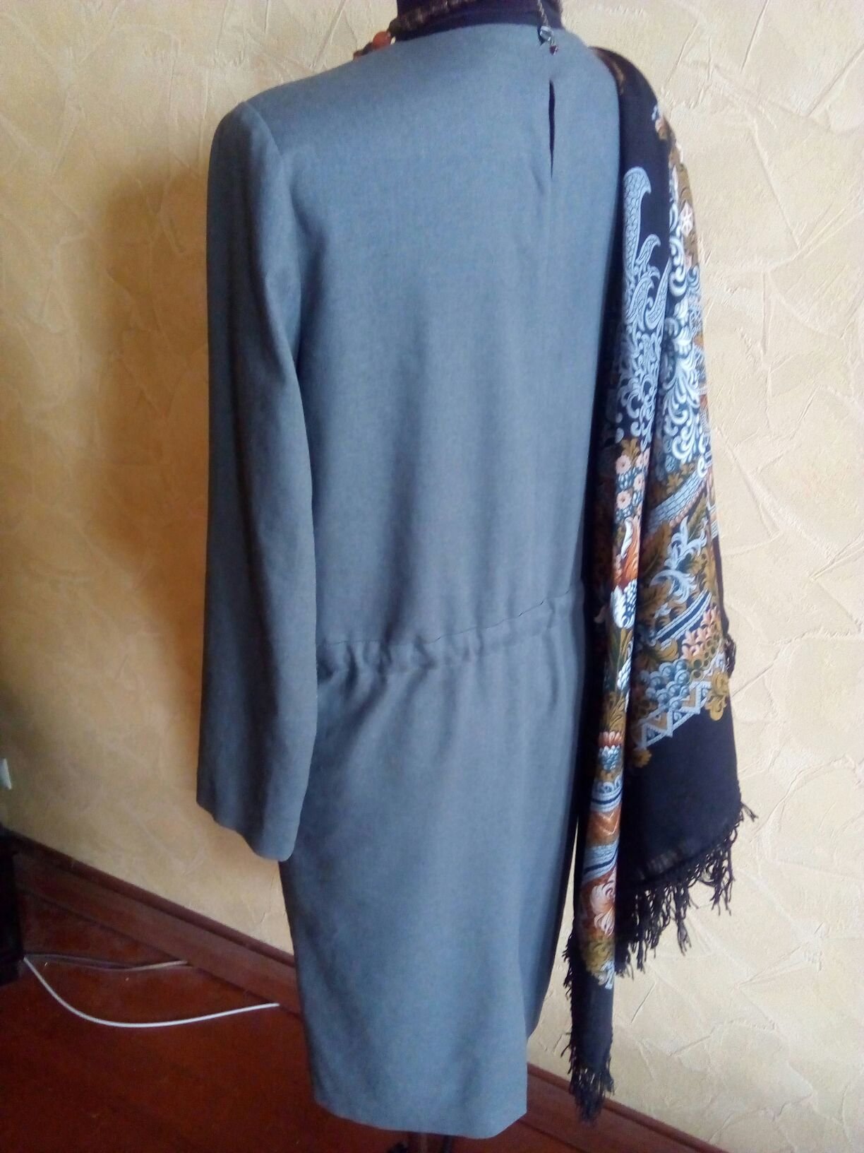 Сшила базовое платье. В кои веки себе и нехарактерно серого цвета. С Бархатной ночью 18 хорошо. Оказалось, не так просто платок подобрать, серый имеет массу оттенков.)