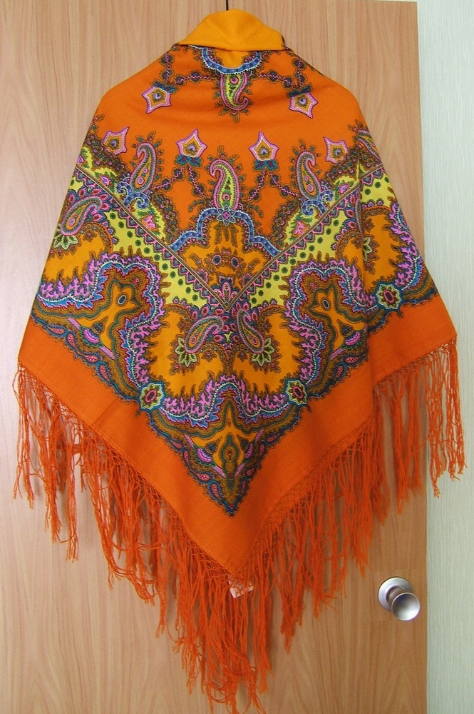 Эта старинная шаль изначально печаталась с пустой серединкой. Где-то в 60-десятые годы к какому-то юбилею Ольшевская добавила в середину орнамент и соответствующий текст. Что-то о годовщине революции. Наши заказчики просили восстановить эту шаль с серединкой, но, естественно, без надписи. В настоящее время она больше не печатается. Кстати для восточных покупателей мы работали всегда. Оранжевый колорит - есть в нашем ассортиментном кабинете, он примерно 1965 - 1970 года.Zhara писал(а): Теперь внимение, вопрос: Уважаемые знатоки, кто знает, что это за шаль? Возможно, в этом поможет номер артикула 942-2.