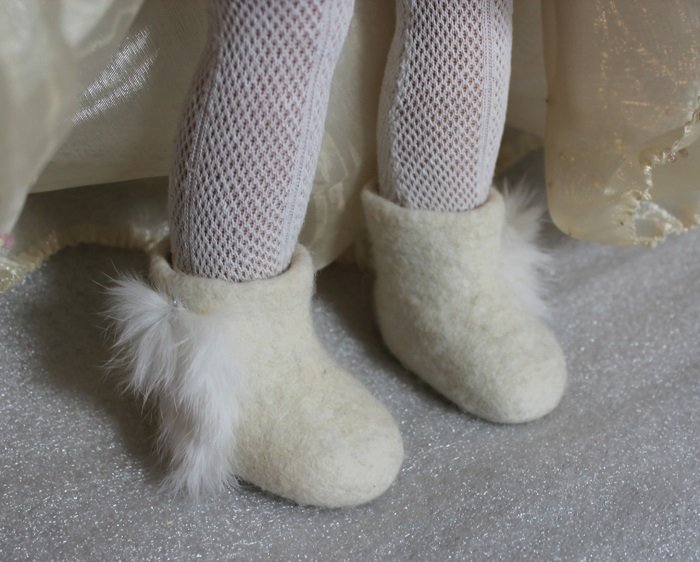 Сирин, обаятельные башмачки. Интересно, из чего подошва... В планах научиться хотя бы валяную обувь осилить человеческого размера. по ссылке фото миниваленок.