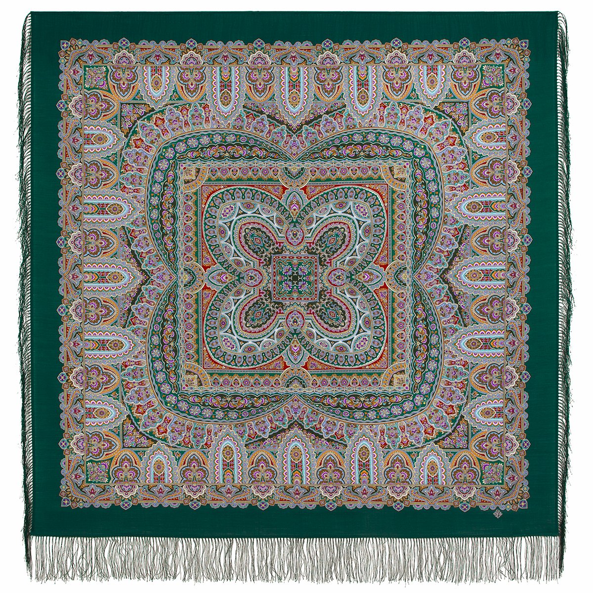 ВЕЛИКОЛЕПНЫЙ ВЕК 1867. Платок шелковый (крепдешин, бахрома), 130х130 см. Выпуск 2019 г.