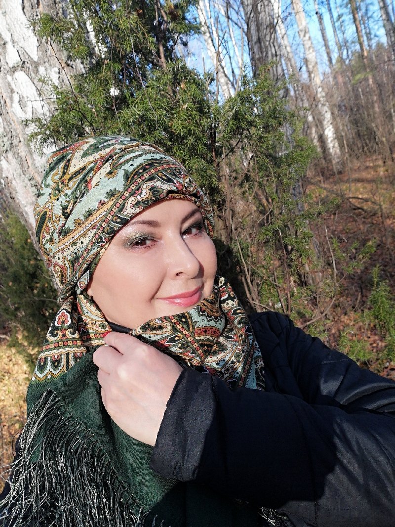 Сегодня удалось побывать в лесу. Воздух ядренный, хвойный, солнышко и небо голубое голубое. Поехали за лапником. Укрывать цветы за зиму. Ну как же не пофотографироваться. На голове был шерстяной палантин "Город золотой". Было плюс 2 градуса, не замёрзла. Довольно таки уютно было в нем.