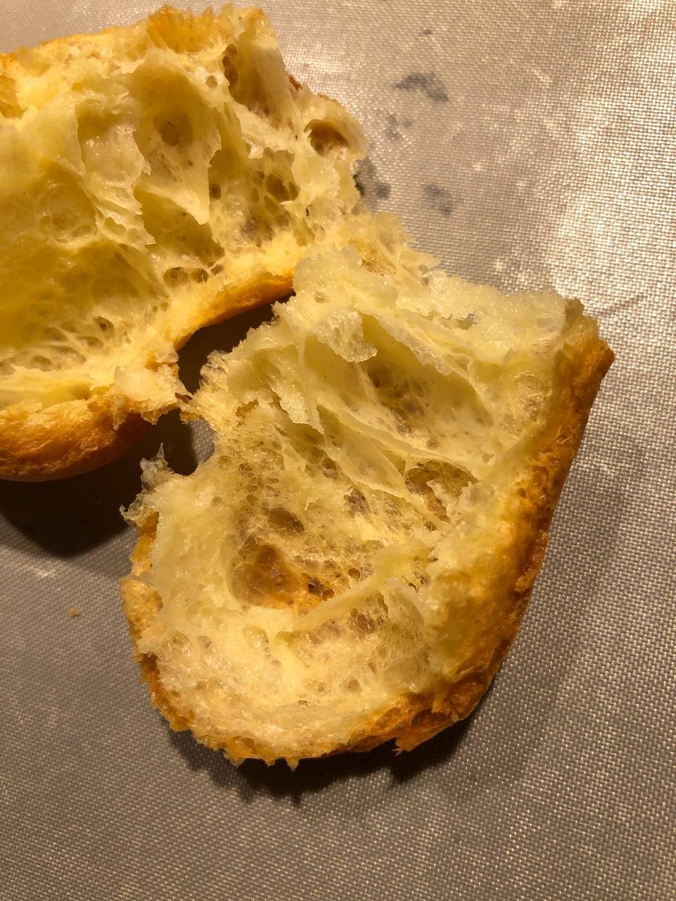 Высыпьте на стол ещё 20 г муки. Сверху на муку выложите получившееся липкое тесто и немного его обомните. Не обязательно вмешивать всю муку, постарайтесь не "забить" тесто мукой, оно не должно получиться слишком плотным.
