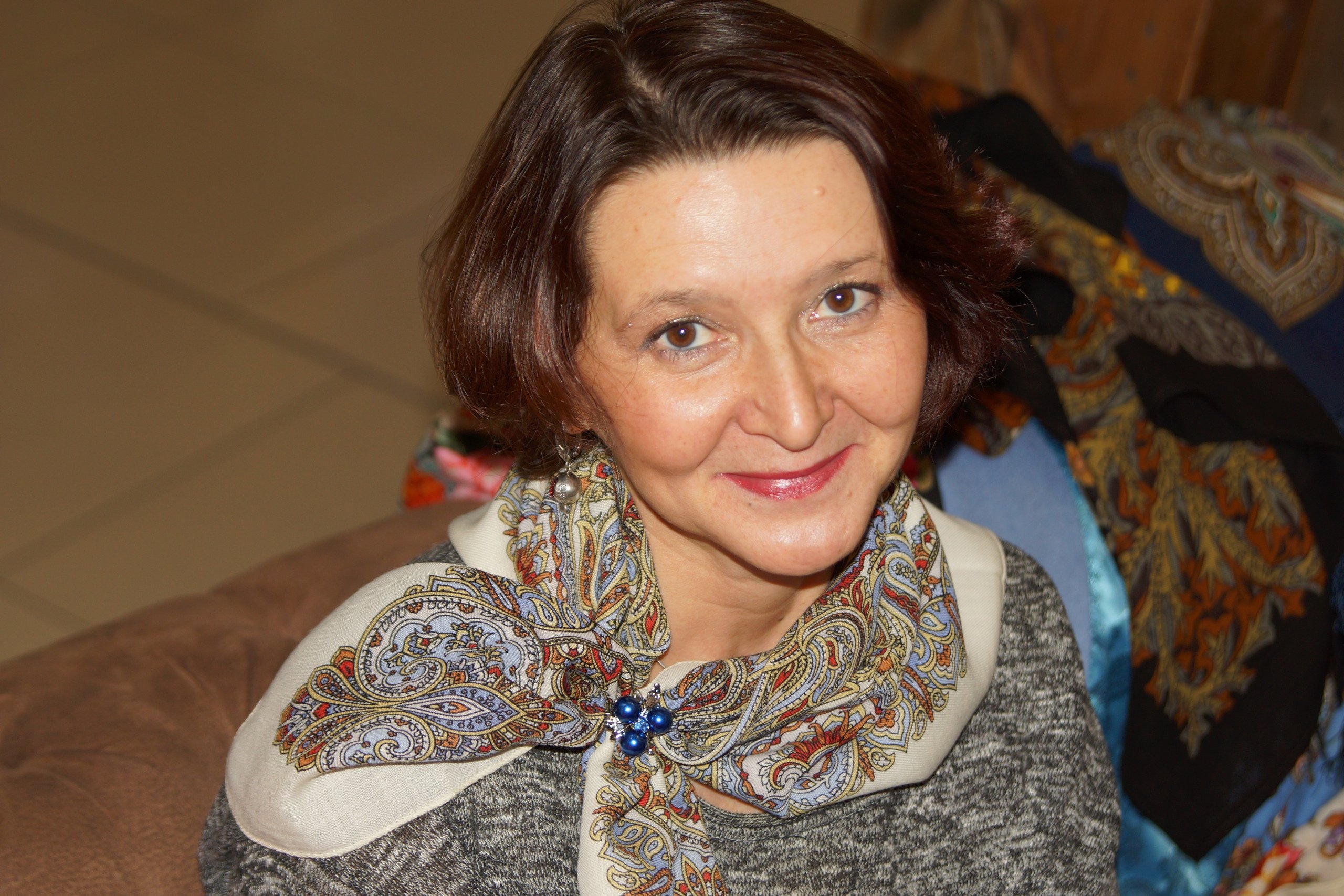 Nathalie, Наташа просто красавица. А цветы особенно красные тебе очень идут. Придают образу твоему игривость и яркость. Ты всегда умеешь подбирать платочки и шали. Всегда образ получается единым, одно перетекает в другое. Ты просто молодец! Спасибо Наташа за показ!