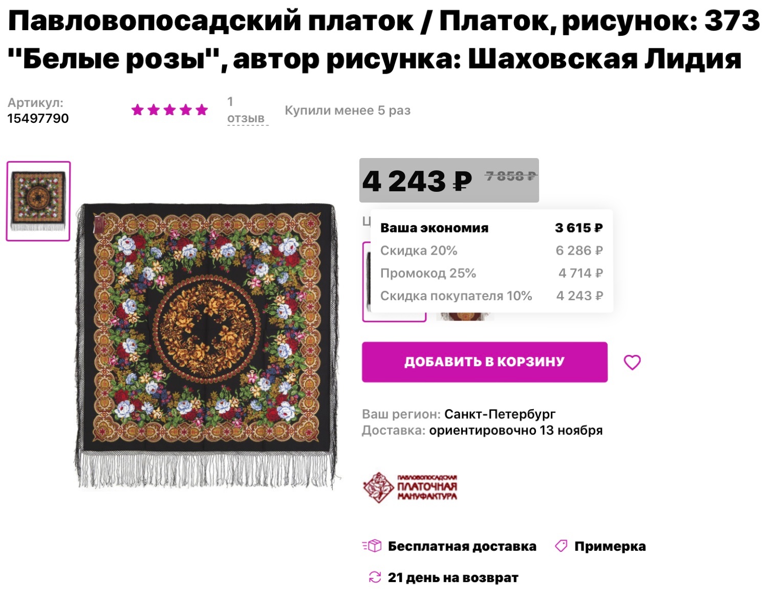 Не знаю, чего ППМ так жмется на скидки, объем продаж благодаря ВБ у них явно очень вырос, а многие платки они там продают дороже, чем в магазине!