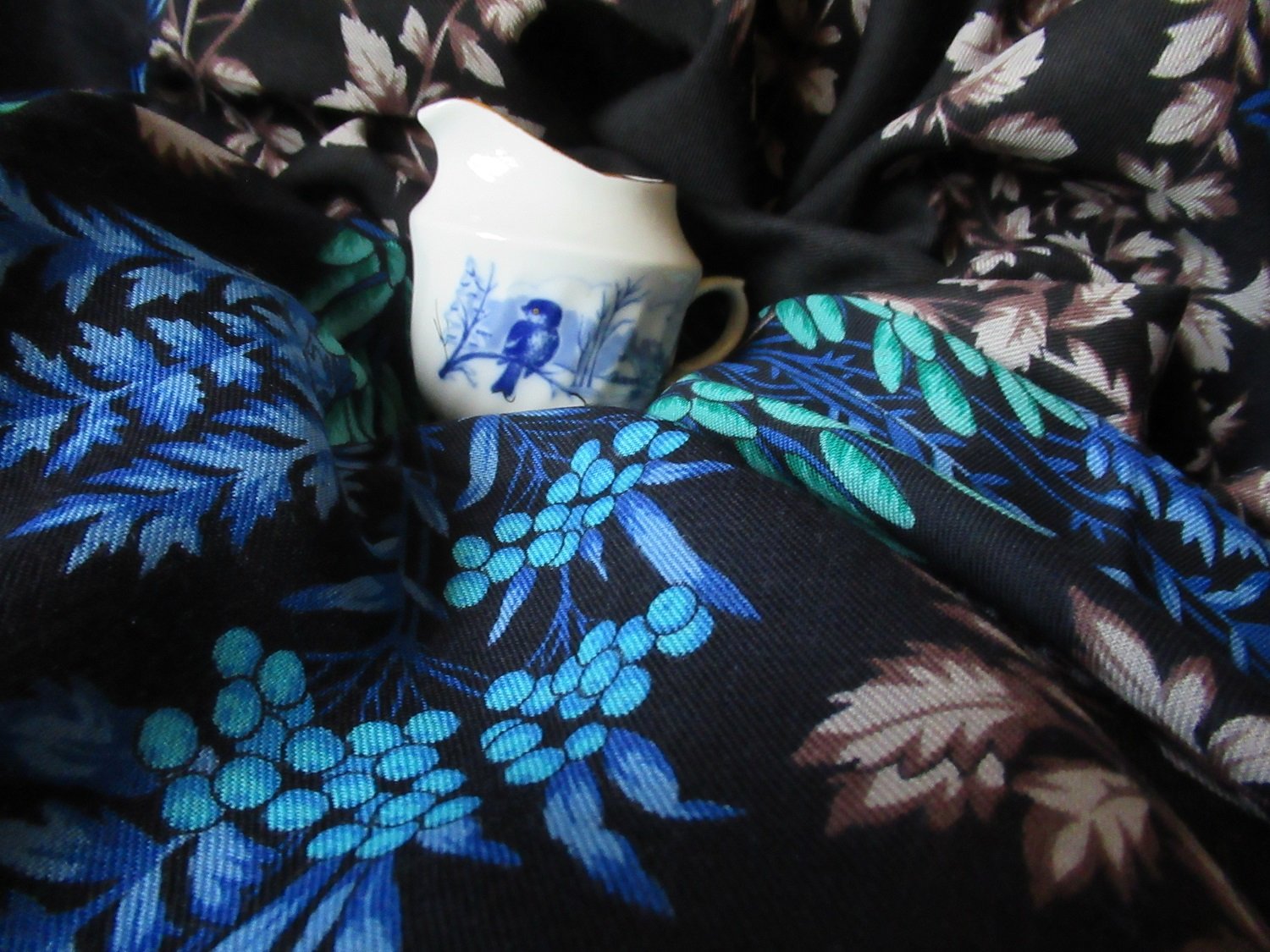 А вот про Миндаль-19 могу сказать точно, что такого редкого красавца давно никто не показывал. Смотрится на Вас великолепно, и дорого-богато в прямом смысле. Вот кидайте в меня тапки (желательно парами), но это точно старая печать Миндаля. Шаль словно говорит, я само совершенство, и дама, выбравшая меня, отличается особо изысканным вкусом, ибо такой роскошной шали, в не менее роскошном колорите, еще поискать.