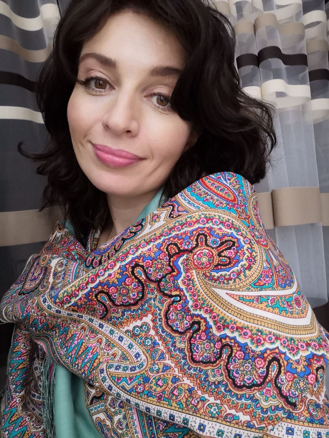 Девушки, а вот с этой шалью не знаю, что делать) Домашние мои сказали, что я в ней на все свои 44, да ещё и с плюсом))) может цвета не мои, не знаю. Сама шаль мне безумно нравится, готова любоваться на неё как на картину, но на себе теперь не уверена. Посмотрите, со стороны, пожалуйста, оставить или не моё?