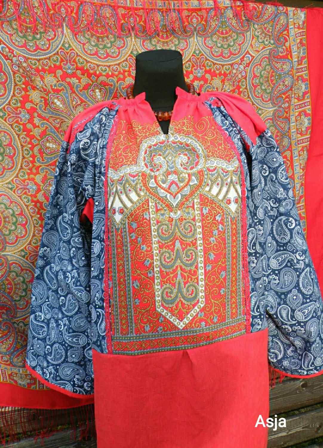 Тип рубахи "с прямыми поликами" очень широко был распространен,свою выкройку я сочинила на основе обмеров образцов из этнографических экспедиций в Латгалии,это часть Латвии,заселенная ,в том числе,русскими староверами,сохранившими этот тип костюма до 60х гг. 20 века.