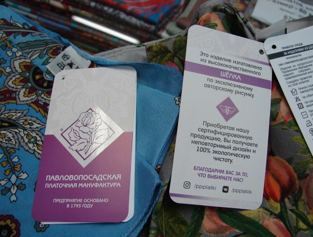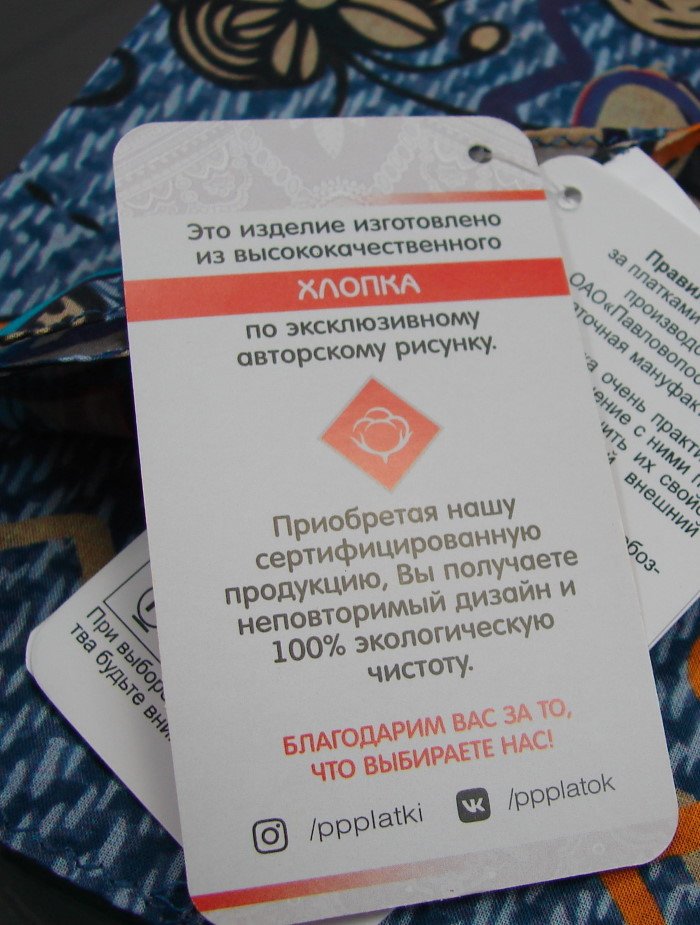 7. На самом платке есть вшитая бирка, с указанием оф.сайта platki.ru.