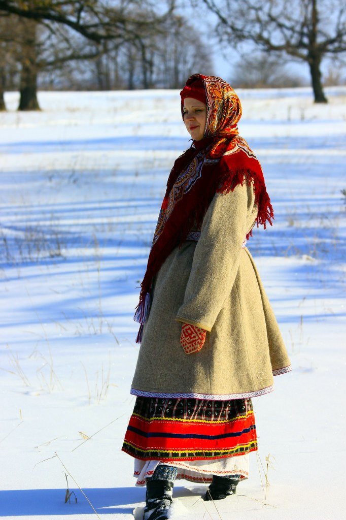 Немного в тему "носим слоями" :D Очень люблю подбирать "парочки": поменьше - на голову, побольше - на плечи или завернуться для пущего тепла. Всё это легко комбинируется с народной одеждой, или одеждой в народном стиле. Например, у меня есть клетчатая юбка из "Фамилии", по расцветке очень удачно имитирующая рязанскую понёву. Уже несколько лет весной и осенью носится и в хвост и в гриву, жалею, что не купила две. Для города она хороша тем, что на создаёт толщины в талии, как понёва, и при этом аутентично смотрится с шерстяным понитком, поясом и платками.