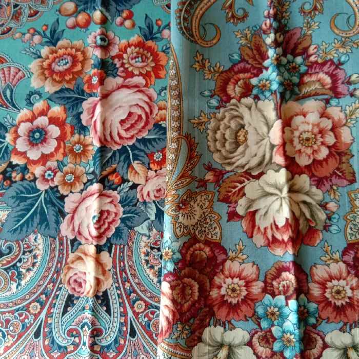Лютик, Летучка, фото у меня, к сожалению, нет, но видела эти платки вместе. Сходство кажущееся, цветовая гамма разная. Тройка - приглушенная бирюза с неярким рыжим и лососевым, Именинница - серовато-голубая и розовато-бежевая. Сложно будет, обе хороши)))