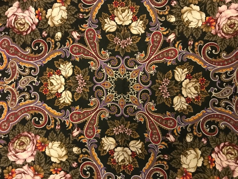 А у Ольшевский весь платок Ковер-самолет разрисован фантазийными цветками.