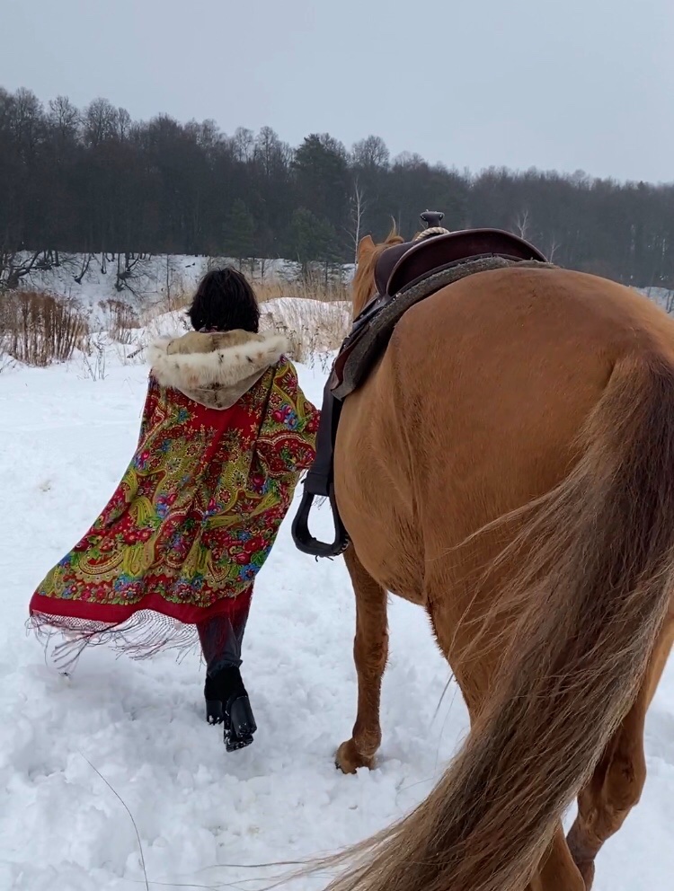 Nathalie, шубы,шали,лощади вам очень идут. Даже не знаю,что больше,видно,вам пойдет и загородный дом с конюшней) "Разводной" созвучен и сюжету и вашей яркой красоте.
