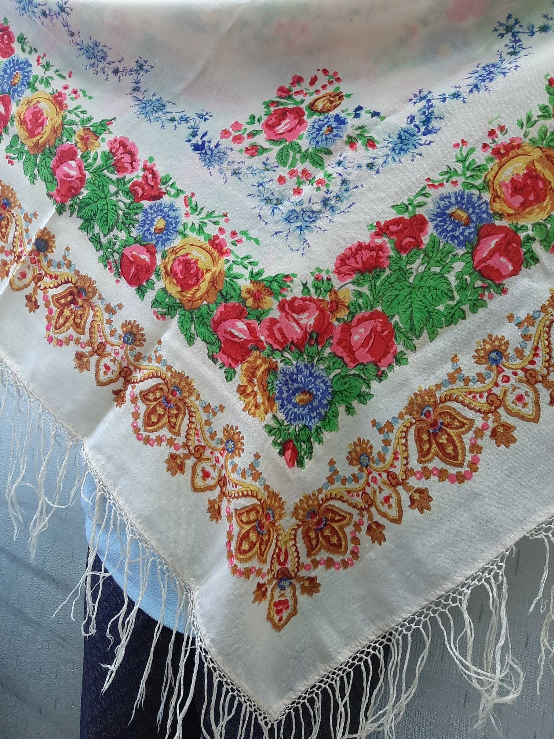 Девочки, добрый вечер! Помогите опознать платочек. На работе у коллеги отыскался давнишний платок, кажется размер 125 с шерстяной бахромой