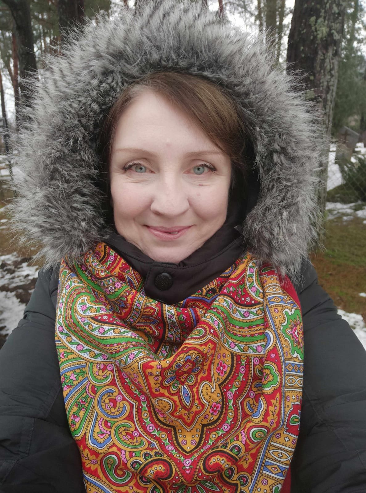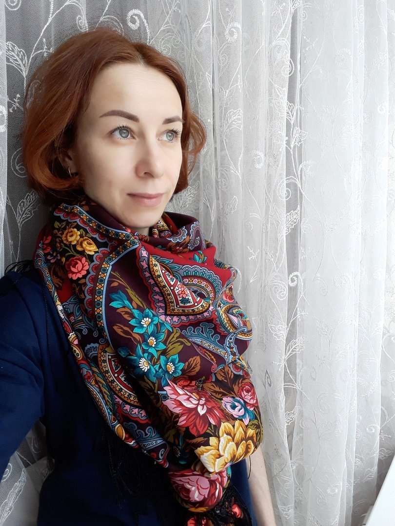 Golden Fox _Асенька, для погоды которую ты описываешь, Испанский прямо в точку. Яркий, тут же и зелень и желтый(охра) и красный, все вместе поднимает настроение, прямо чувствуется весна у вас. Цвет глаз твоих меняется от цвета шали или платка, но по моему меняется и от настроения твоего и от цвета неба! Платок такого цвета ты ещё не показывала! Замечательно подчёркивает цвет твоих глаз и освежает и молодит лицо. Даааааа Испанский хоть куда и в пир и в мир! Хочется в такую погоду внести яркость и радость! У тебя это прекрасно получилось! 👍😍