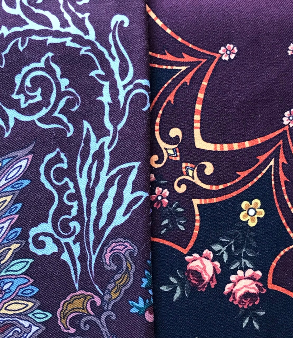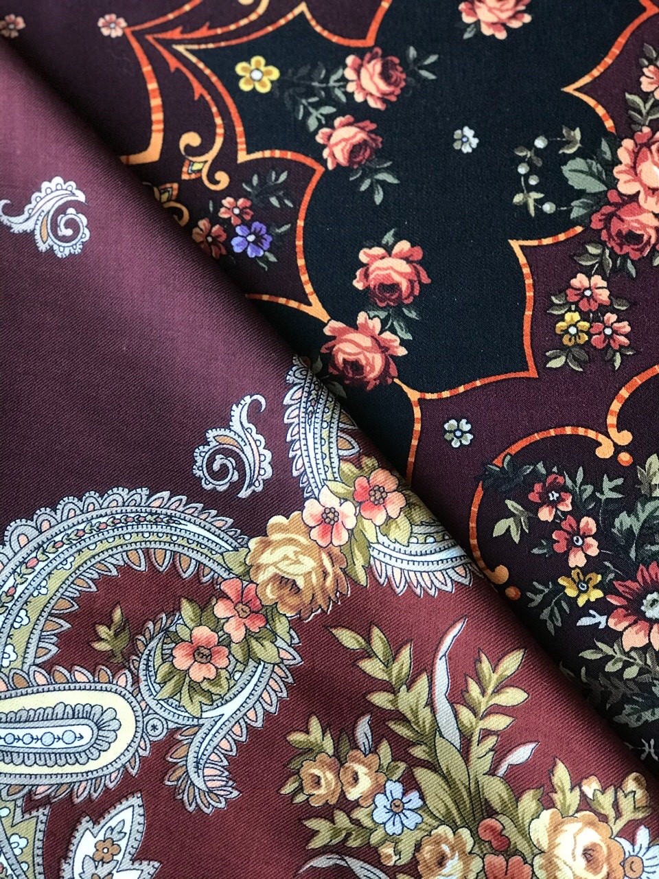 Надеюсь на печать новых колоритов, ведь рисунок замечательный: некрупные букеты, тонкая вязь орнамента и три цвета (оттенка) грунта!