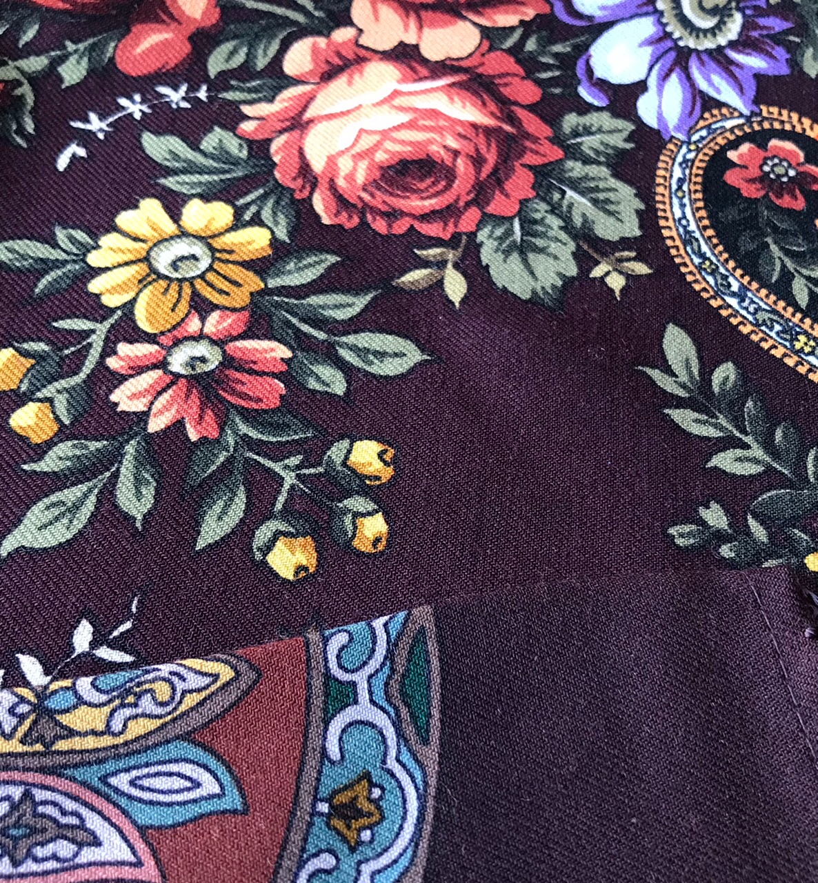 Надеюсь на печать новых колоритов, ведь рисунок замечательный: некрупные букеты, тонкая вязь орнамента и три цвета (оттенка) грунта!
