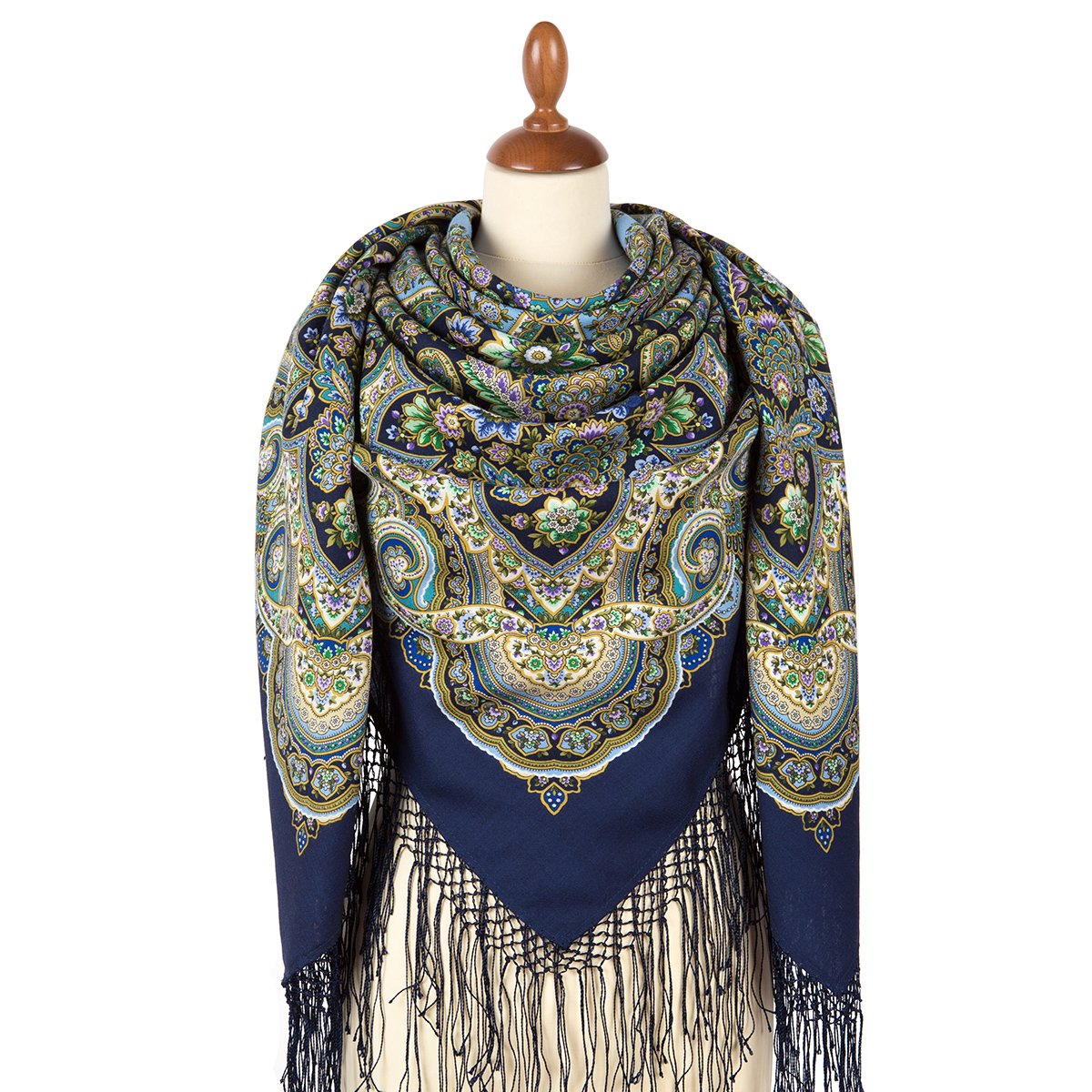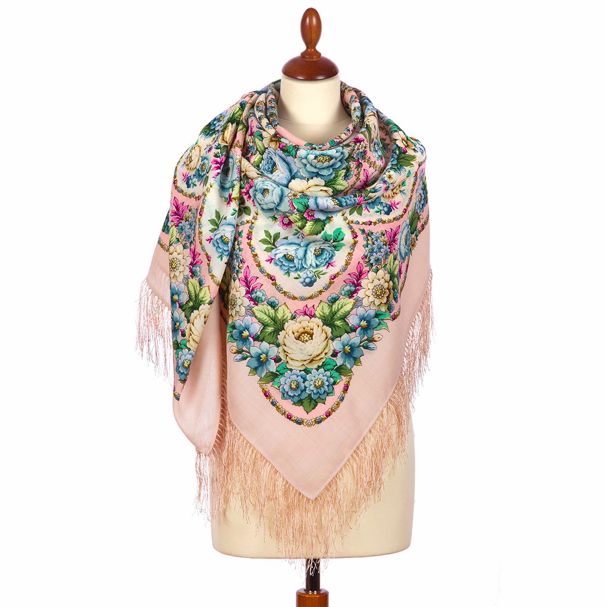 Платок шерстяной с шелковой бахромой, 146x146 см