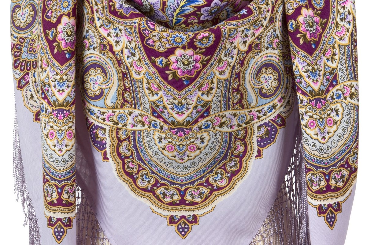 Платок шерстяной с шелковой бахромой, 146x146 см.