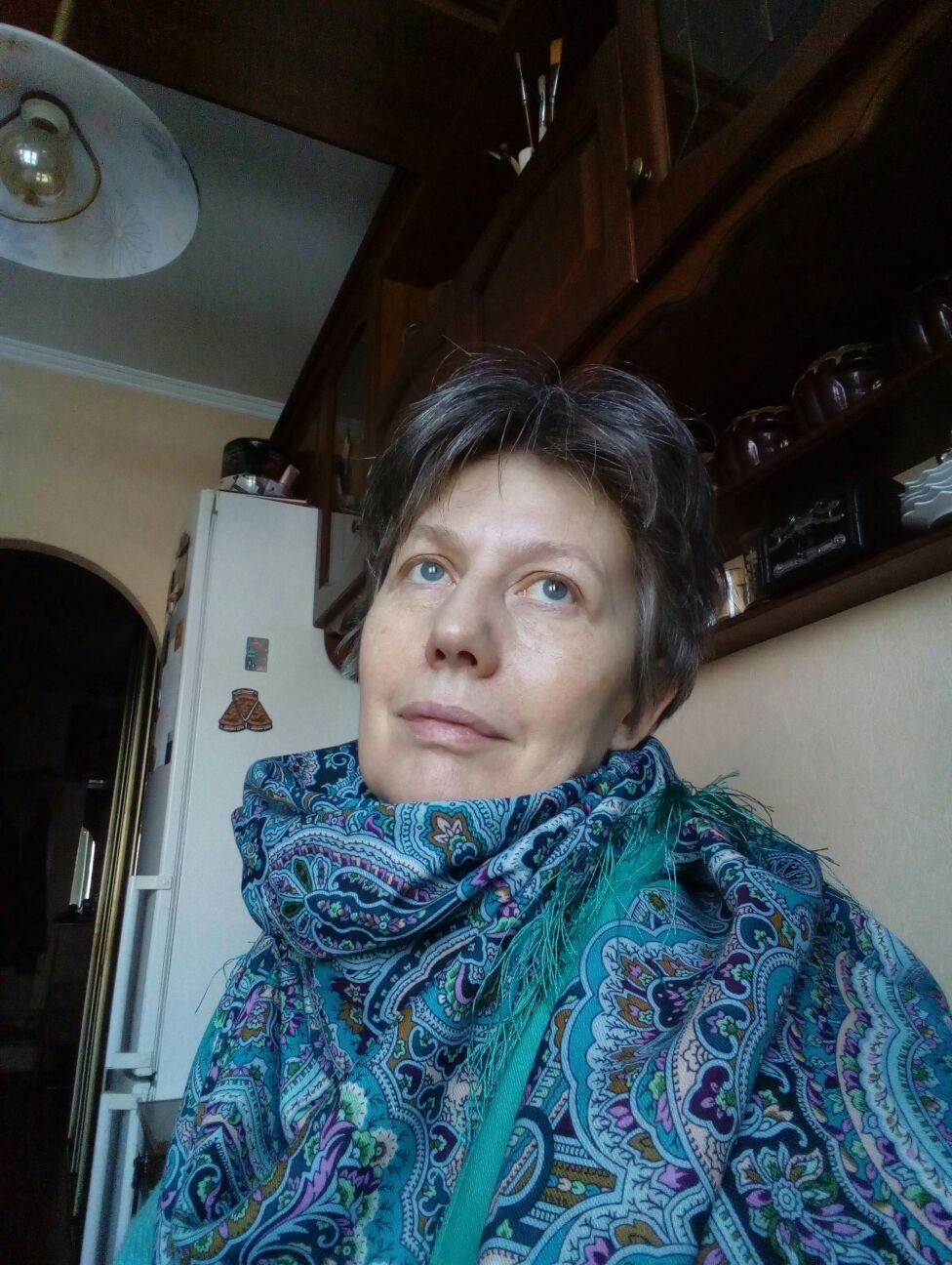 Marussa,очень понравился на Вас платок "Троицыно утро".Подчеркивает цвет глаз.Рисунок красивый,подумываю над покупкой,хотя пора бы мне остановиться :lol: