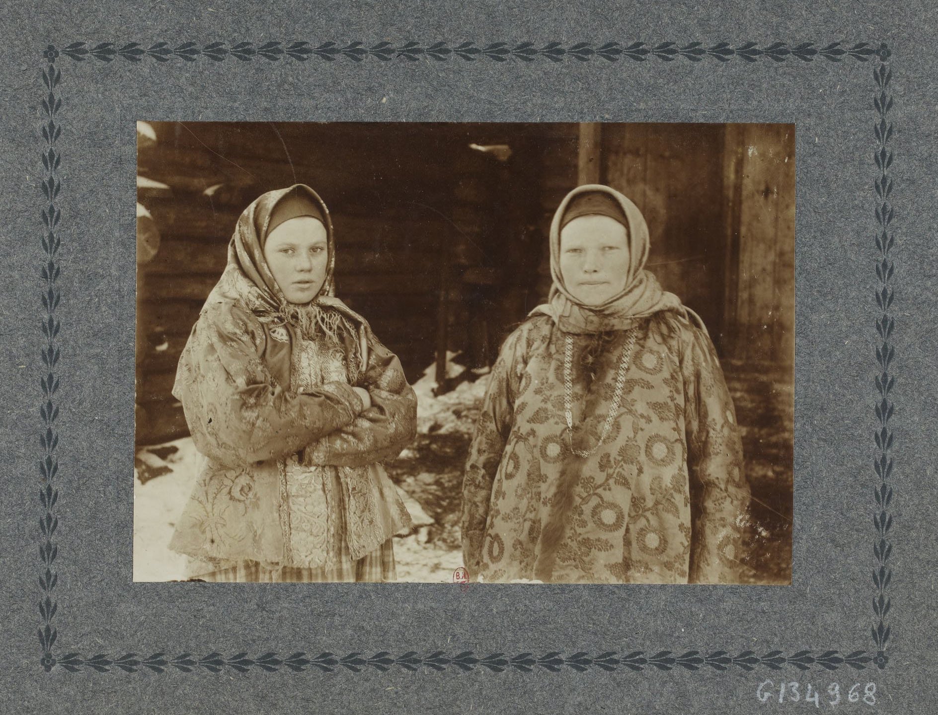 Ну вот,просватали девушку и она в своем самом лучшем,парадном костюме идет замуж. Костюм "повязочницы" состоит из рубахи с пышными рукавами,шелкового или парчового сарафана, шелковой же,с золотыми голунами душегреи, шали (в пасмурную погоду ее могли набросить на плечи,но чаще носили свернутой на левой руке),нескольких шейных шелковых платков(3 минимум), бус,причем количество янтарных ниток давало ясное представление о материальном уровне семьи. Ну и - повязка,самое дорогое в убранстве девушки. Сохранилось немало записанных фольклористами рассказов тех невест,молодиц 1920-ых гг.,которые и состарившись, в начале 70-80ых с обидой вспоминали,что вот дочерей много у их родителей было,так они только старшей сестре повязку справили,а ,мол,остальным - только шальки какие,да и весь сказ. Такая тягостная участь...