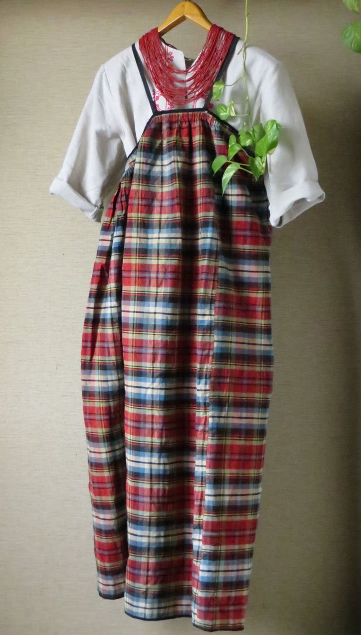 argon, удивительный сарафан. Жизненный такой. Непонятные стыки, возможно, из-за ограниченного количества ткани. Все-таки ручное ткачество. А то, что стык спереди — да, конечно, чтоб фартук прикрывал.