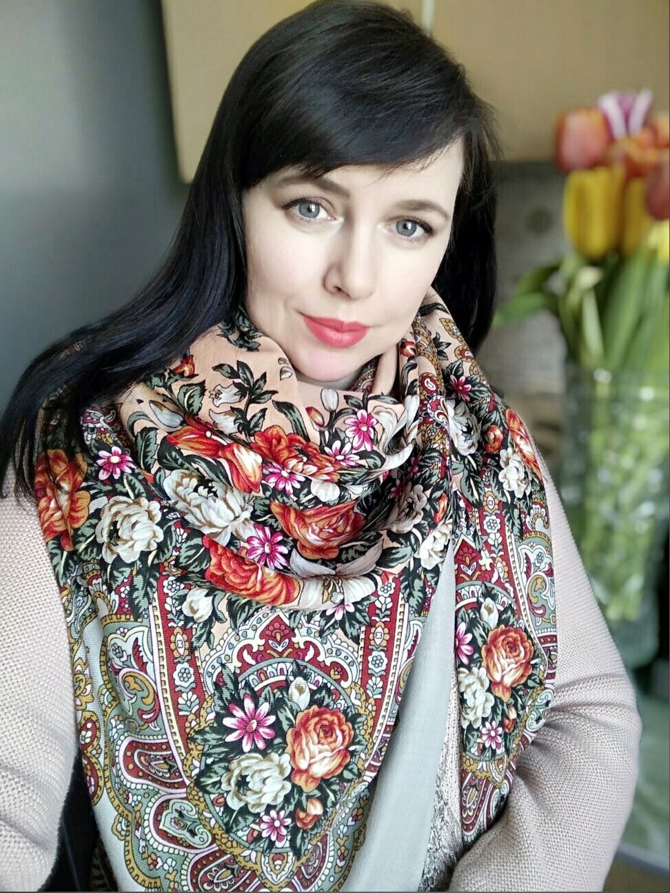 сестричка Аленушка ! Аленькие цветочки, один другого краше! Идет Вам этот платок по особенному! Сказочно!
