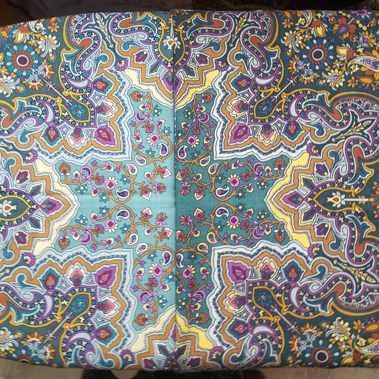 Перевыпуск Ожидания удался во всех колоритах. Зеленый очень хорош, мне, наоборот, старый выпуск видится грубее и жестче, но там, насколько я понимаю, тоже разная печать попадается. А новый деликатный, с легким налётом винтажности - цвета выдержаны, нет слишком яркого жёлтого или сиреневого, и сам зеленый цвет не кричащий, но и не бледный. Шикарная шаль получилась.