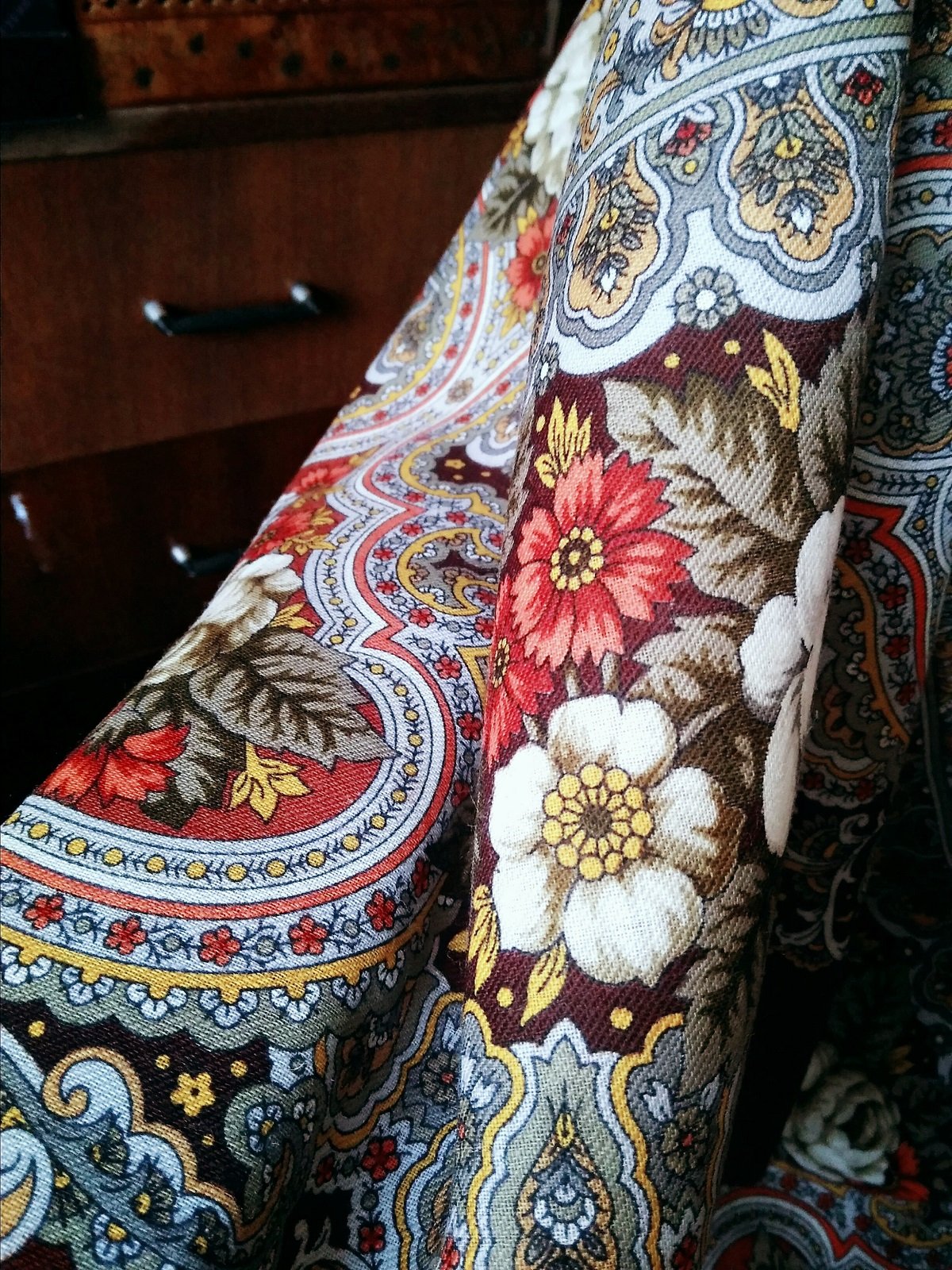 Алое, точно Вы подметили !)) А мне платок Любава очень напоминает городецкую роспись, которую я с детского сада обожаю (платки купила во всех колоритах