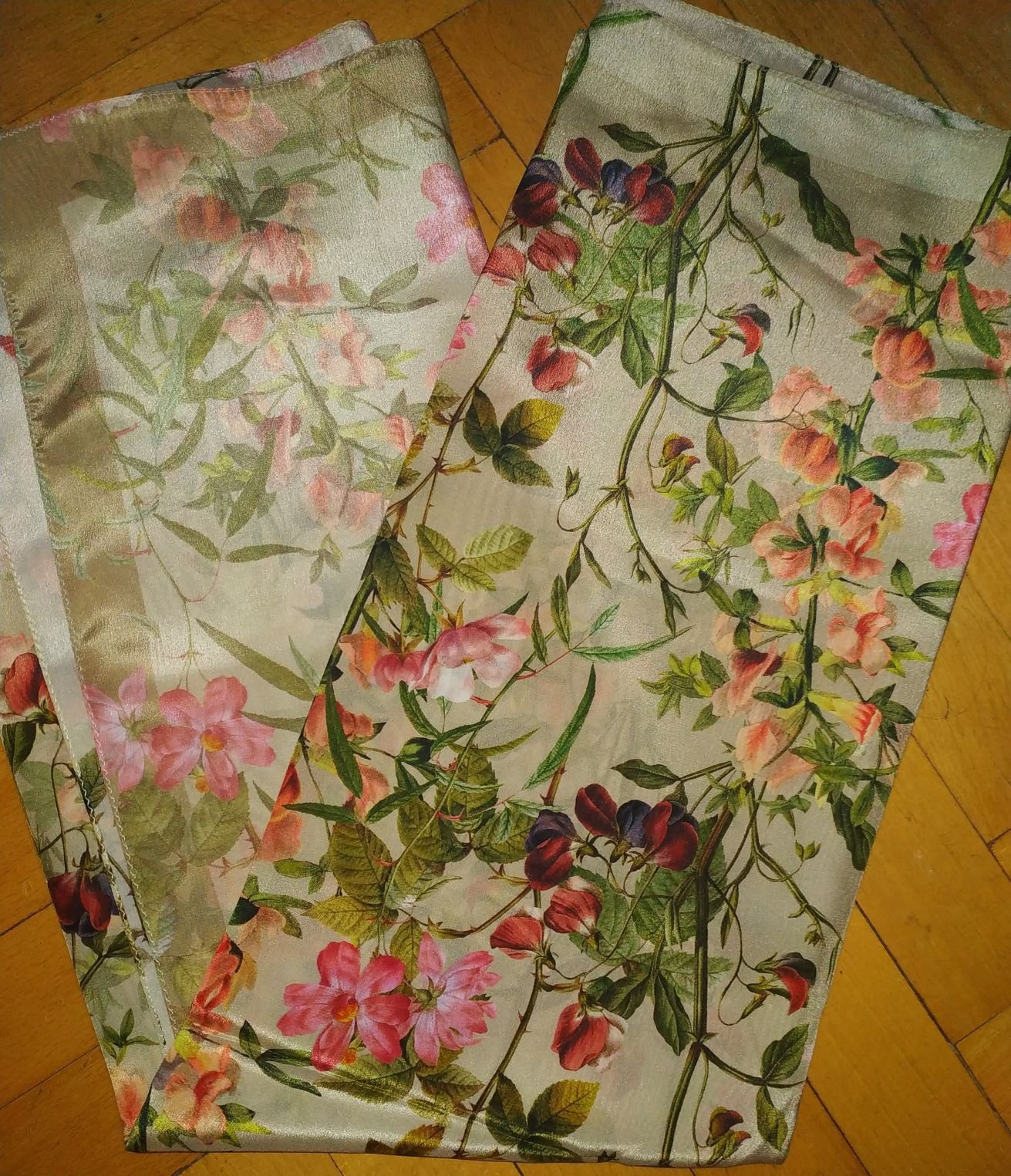 Шелк новенький с шиповником и душистым горошком в оливковых тонах меня не отпустил.