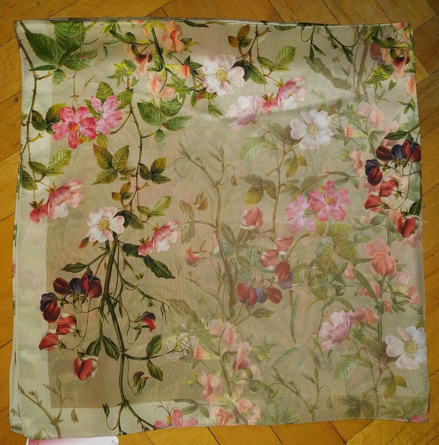Шелк новенький с шиповником и душистым горошком в оливковых тонах меня не отпустил.