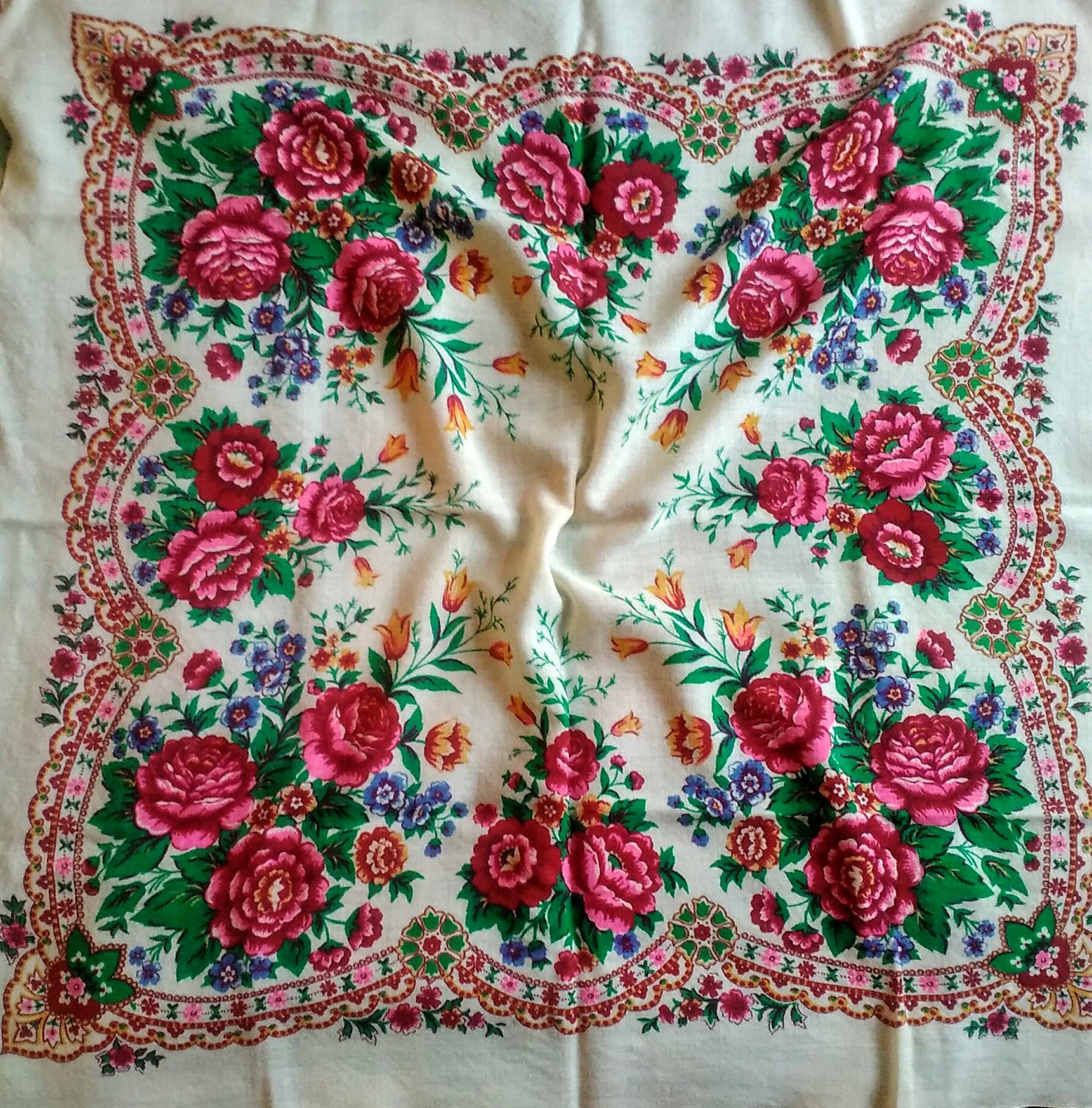 Здравствуйте, коллега нашла у бабушки в шкафу платок. Помогите опознать, пожалуйста.