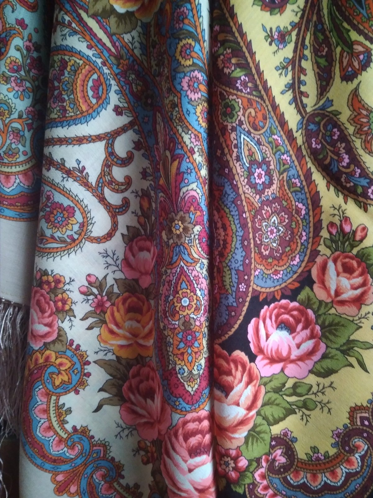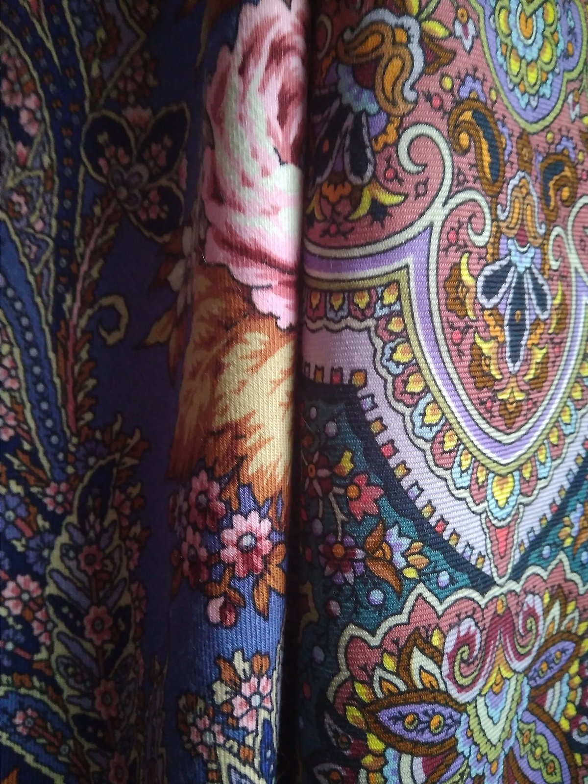 На фото получились как сквозь дымку, в реальности платки более яркие