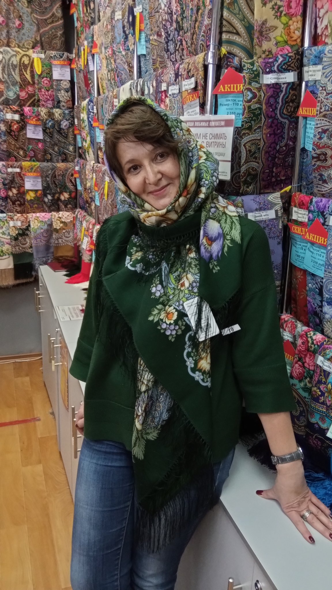 Таня Имбирь, платок как для вас рисовали. Очень к лицу.