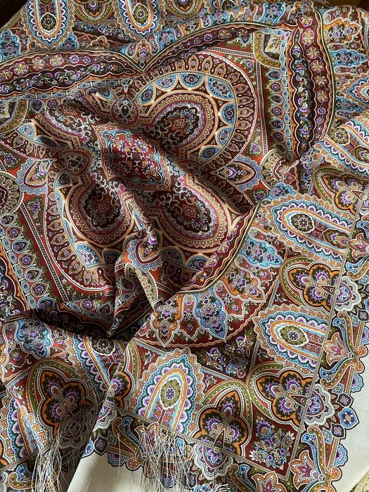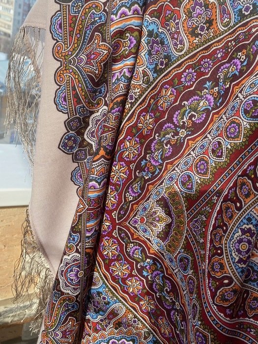 Логично. Терем - платок, чего уж там, "с бусиной в голове" (и стоит дороже), а, судя по всему, здесь уже такой идеальный микс бордо-вишни-экрю , т.е. сочетание теплых и холодных тонов (а это большой плюс), в общем можно успокоиться на этом.