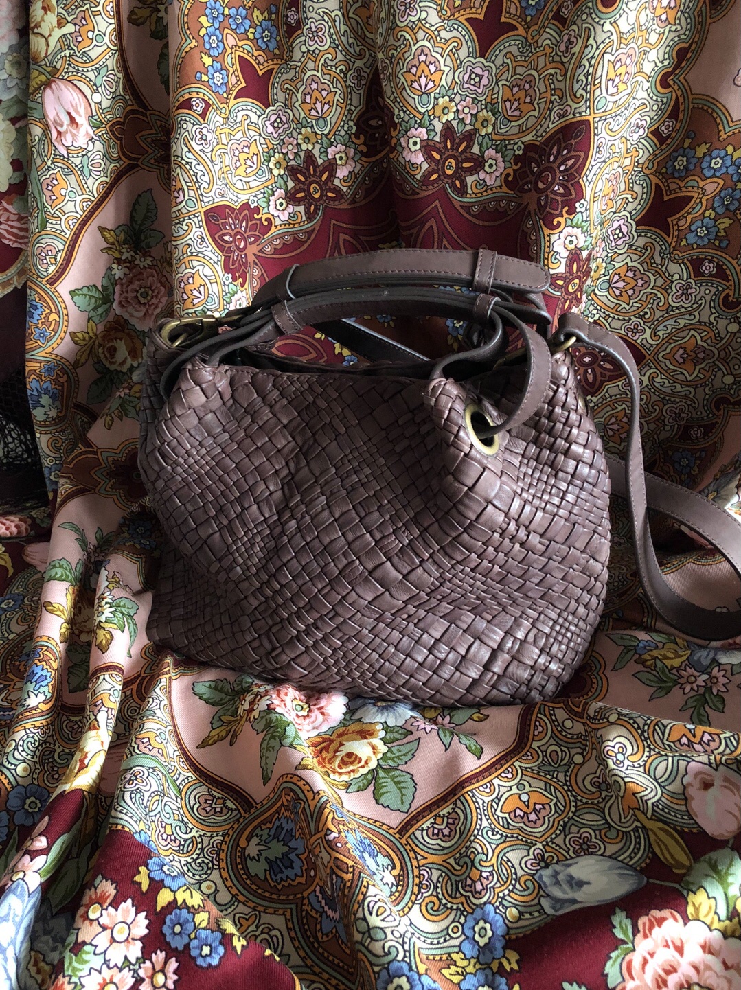 Оля , сумка подходит ко многому, как ни странно, но к ней НЕ подходит ни один платок, шаль из наличия) Боярыня более менее. У тебя очень симпатичные сумочки. Всегда любуюсь твоим вкусом и умением подбирать сумки и обувь.