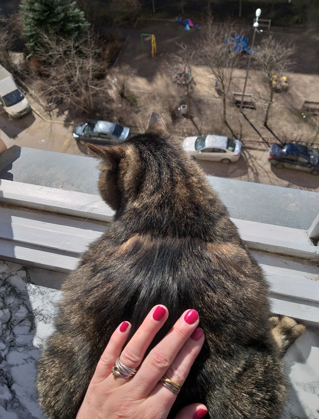 Герлен греется на первом весеннем солнышке. Он уже полностью оброс, прошёл три курса противопаразитарной обработки (и внутренней, и внешней). Вес 6 с маленьким хвостиком. Бодр, подвижен. На данный момент только некоторые изменения в конфигурации (яма на холке) и заметный поперечный отрезок шва, говорят о том, что было серьёзное хирургическое вмешательство. Его это не беспокоит.