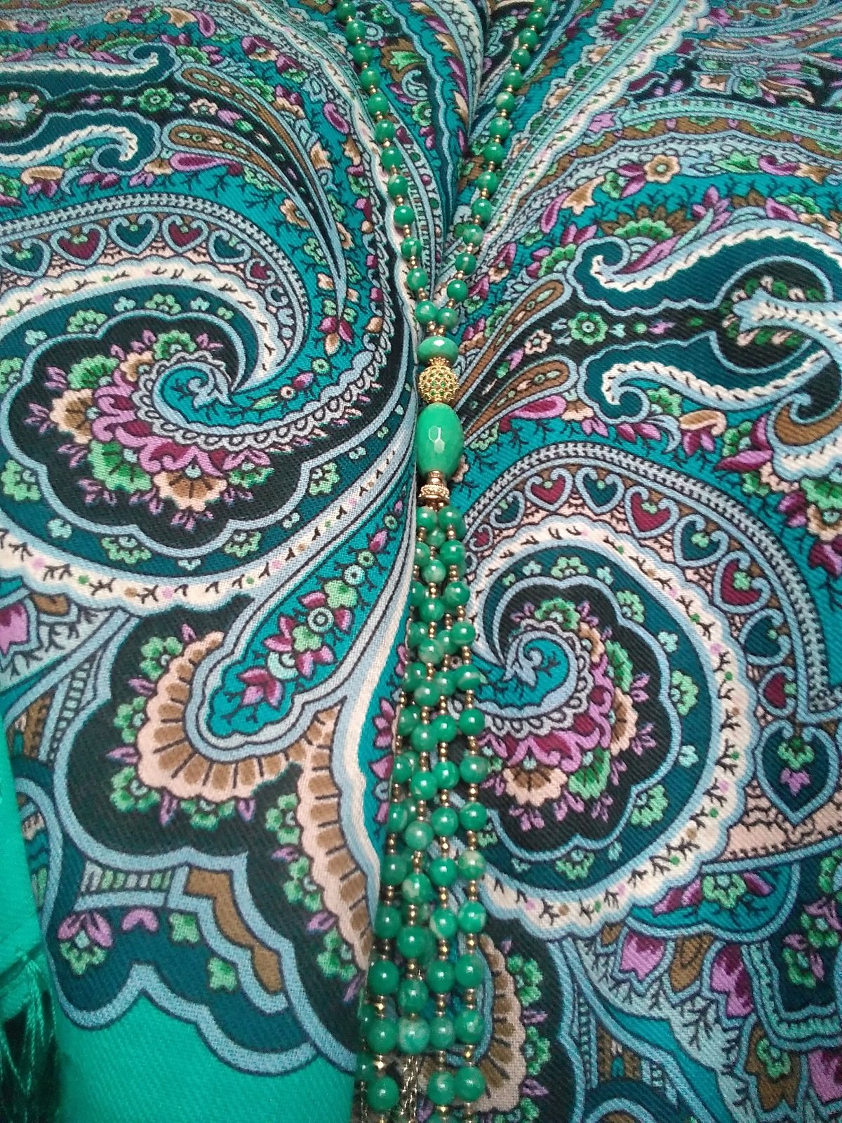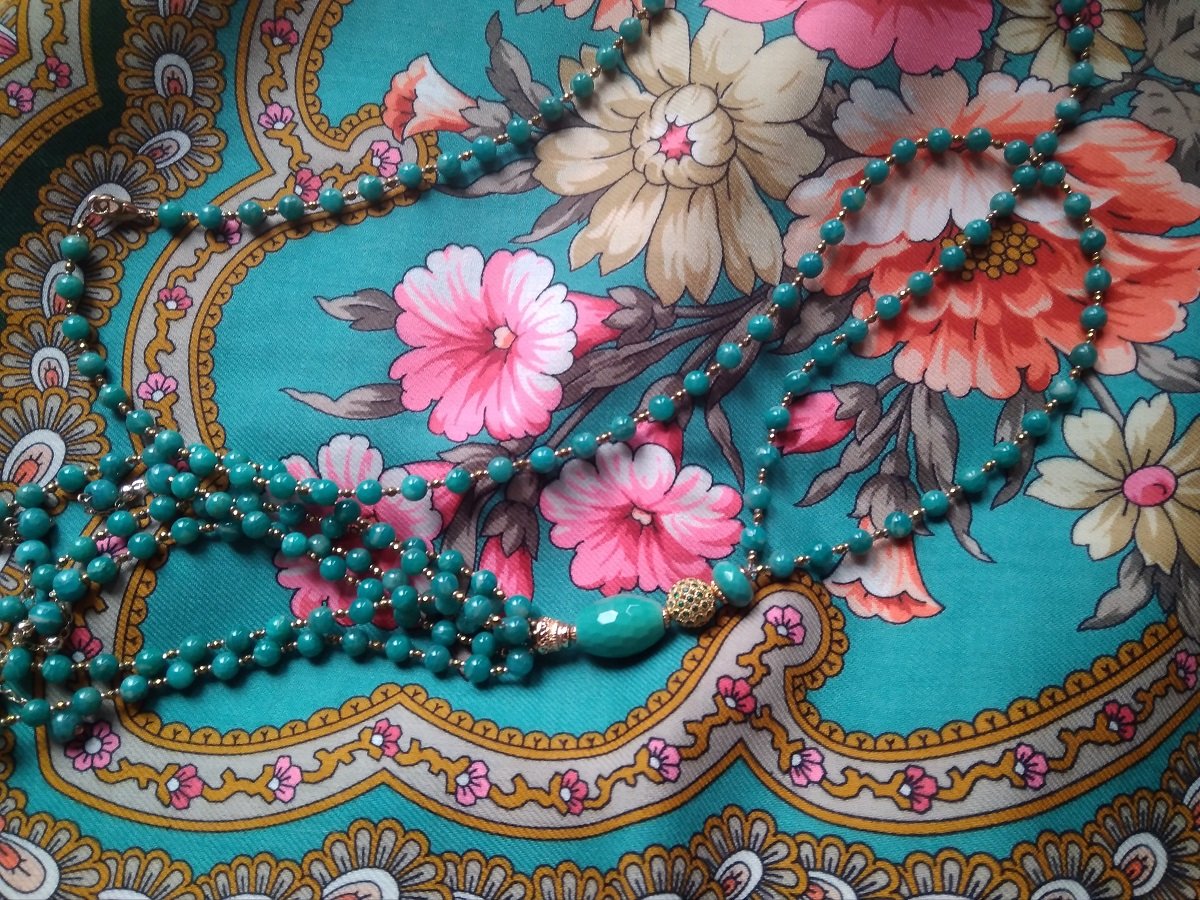 А здесь решила поэкспериментировать с Финифтью-29, но как-то не очень - на фото цвет картушей на Финифти ушел в голубой, в жизни он более зеленый, чуть светлее оттенка на бусах