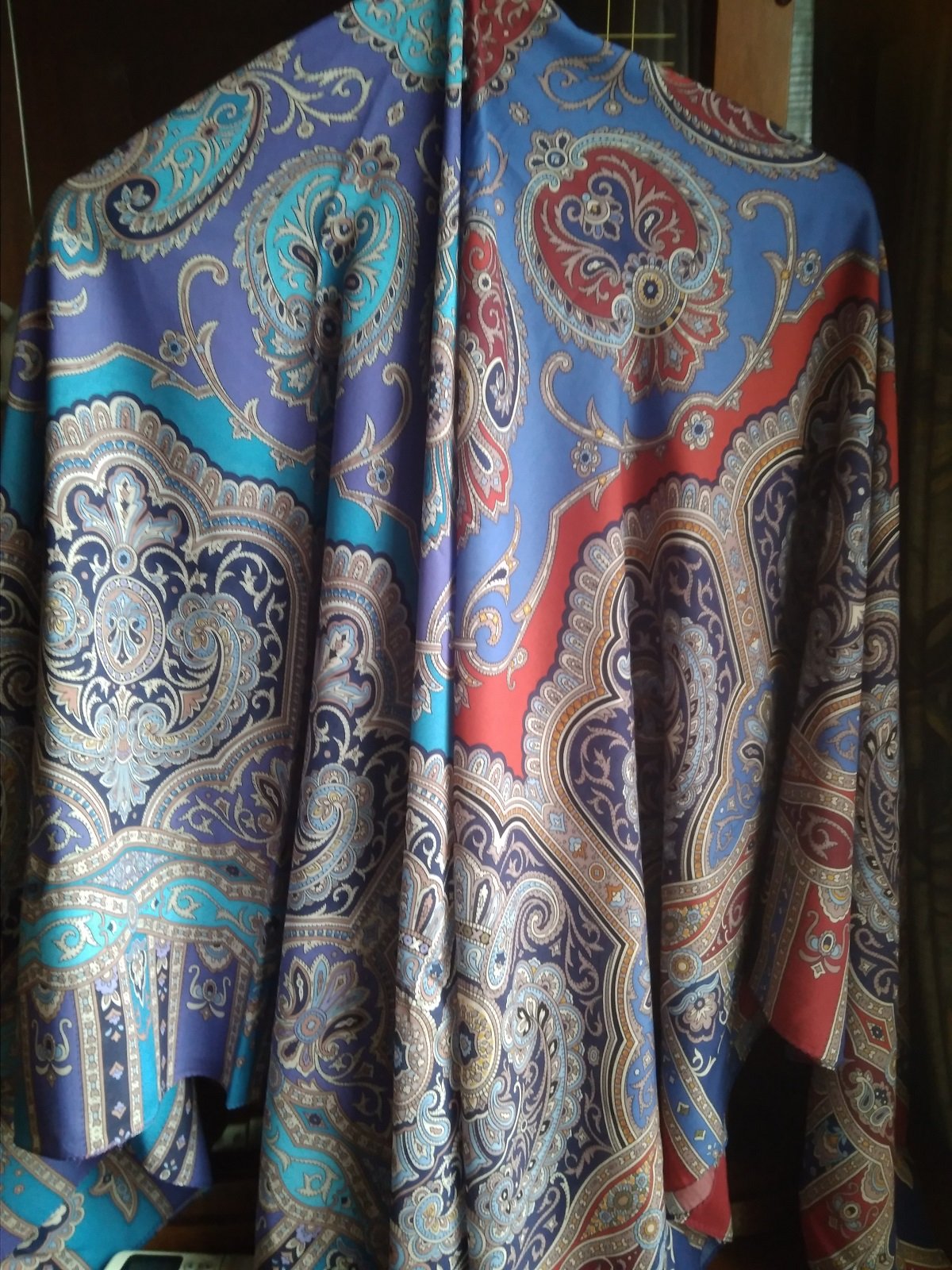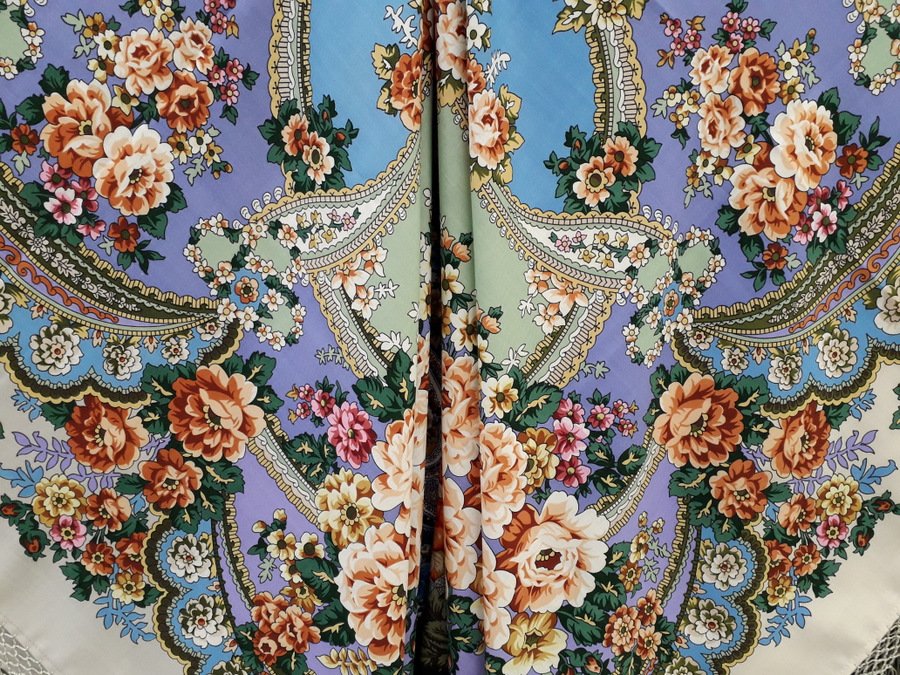 , но шаль справа выглядит как будто чуть темнее, но при этом насыщеннее и контрастнее. Голубая середина особенно.
