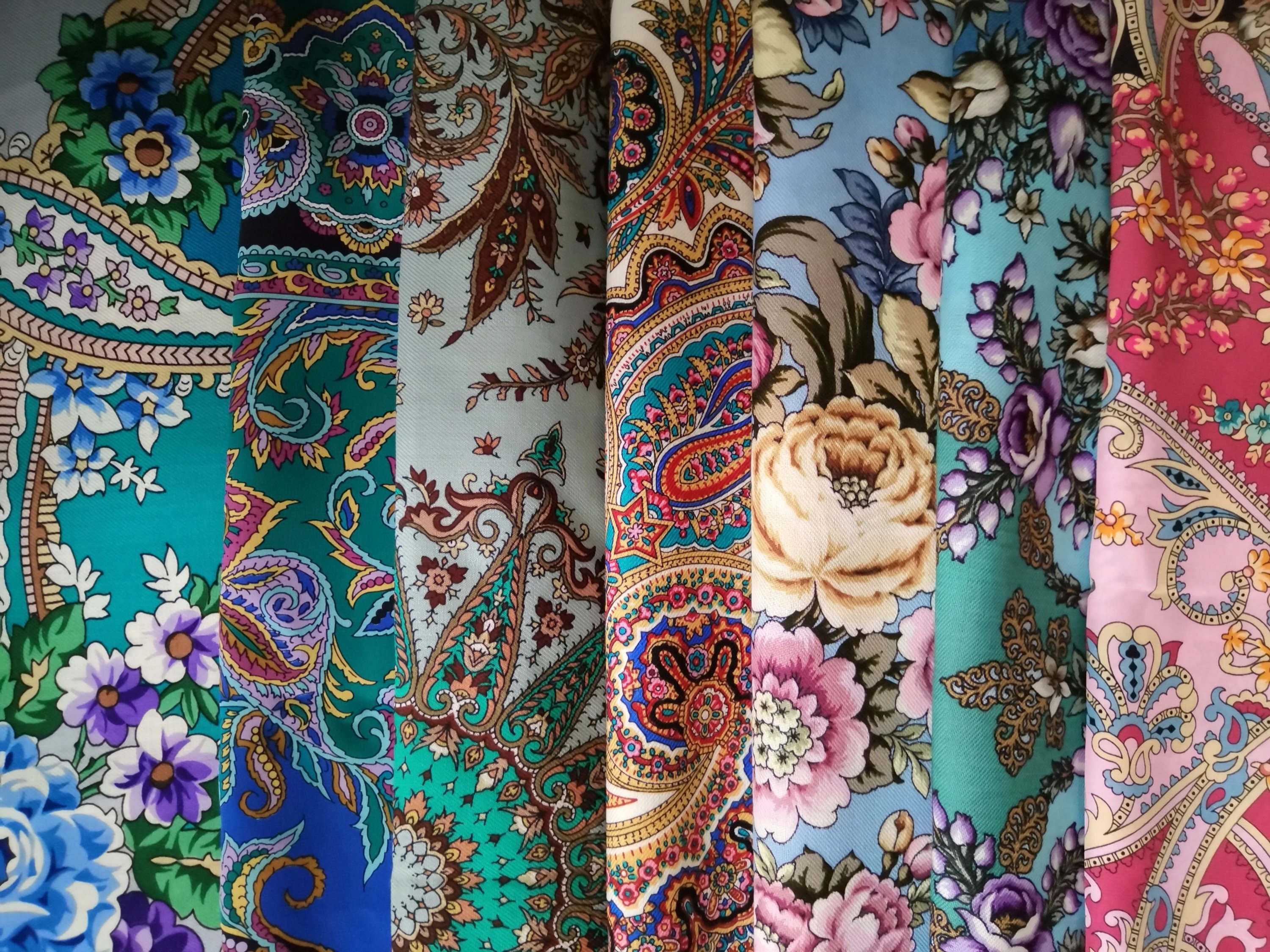 Платок красивейший не только своим рисунком, а главное цветом фона: не светлый, густой, классический красный, переливчатый, и ВНИМАНИЕ--меняющий оттенки! При разном освещении может быть очень разным!