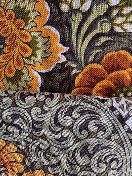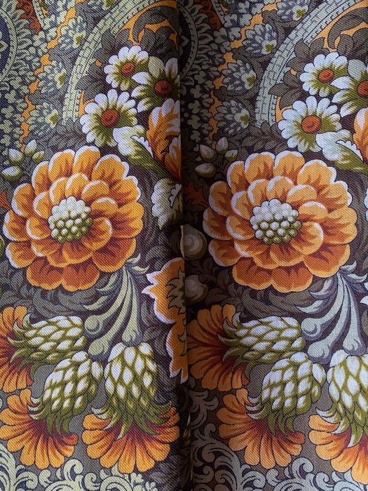 Такая разная печать Терема расписного-2. Впечатление, что фото сделаны при разном свете ( справа-электрический) , но это не так. Везде яркий дневной свет, это платки разные.