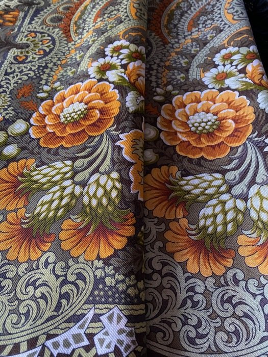 Такая разная печать Терема расписного-2. Впечатление, что фото сделаны при разном свете ( справа-электрический) , но это не так. Везде яркий дневной свет, это платки разные.