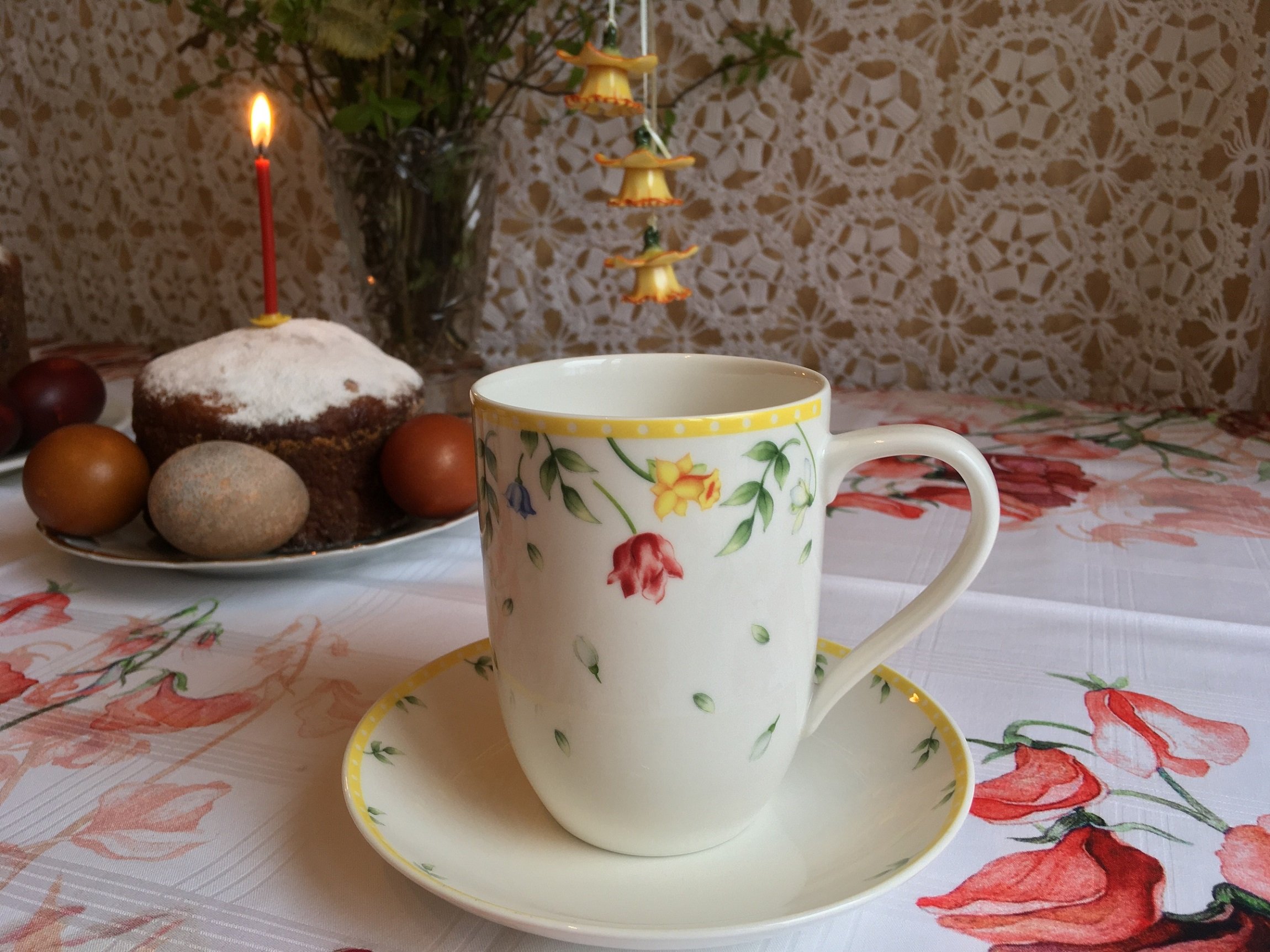 Фарфор из пасхальных коллекций Villeroy&Boch разных лет и скатерть И.Макаганчук 10202-2, а также вязаная скатерть (память о дорогом мне человеке, связала крючком ее сестра лет 60 назад, а то и раньше)