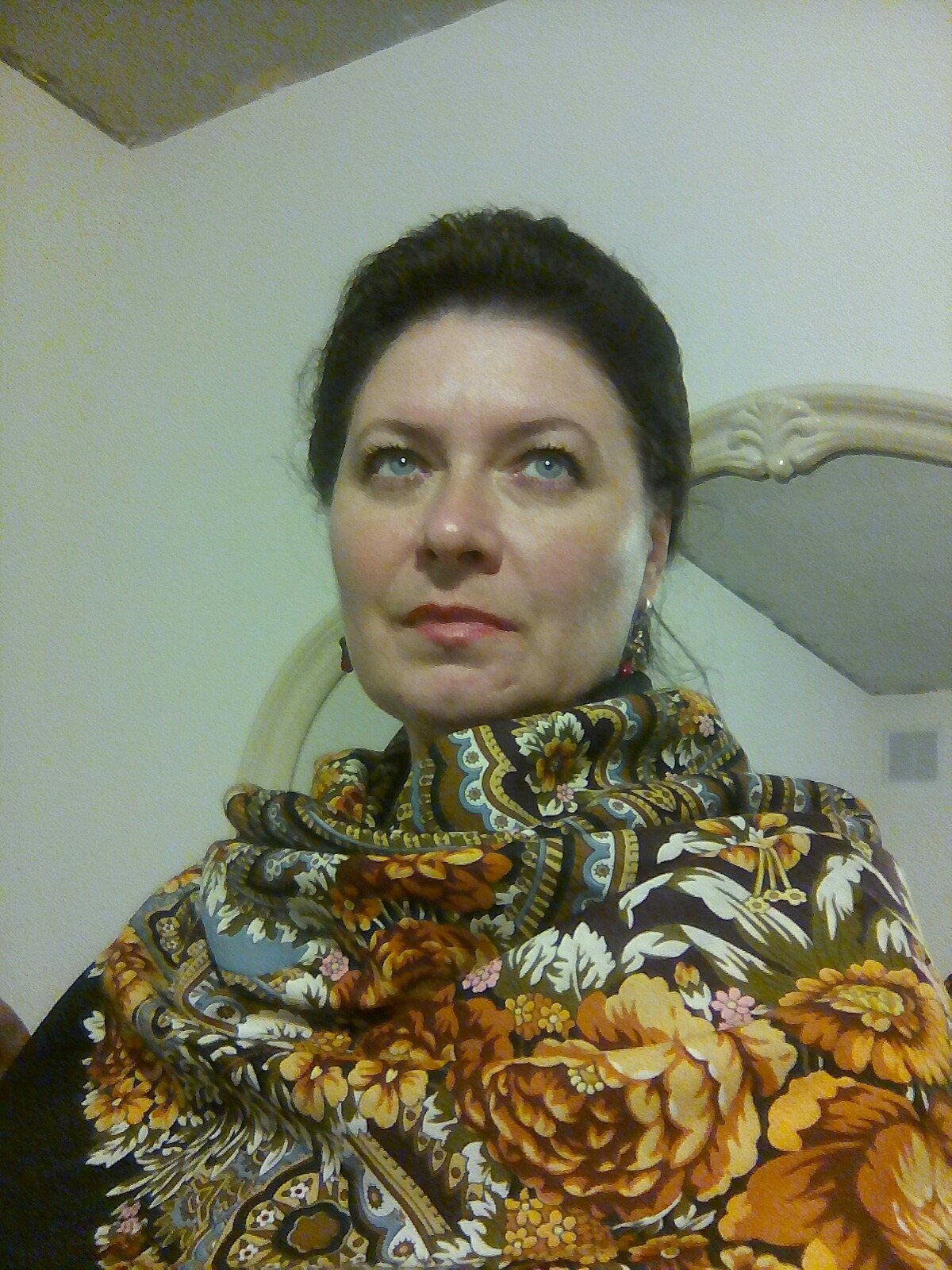 Приобрела эту шаль недавно, в одном из наших фирменных магазинов. При покупке продавец загадочно уточнила, что шаль--"в стандарте". На этикете--первый сорт, дата изготовления 2018.При ближайшем рассмотрении ( уже дома) обнаружила множественные мелкие белые штрихи на рисунке листьев и стеблей, почти незаметные, в области контура. Вопрос--это непрокрасы или такой рисунок, блики? Расположены они хаотично. В одной части есть, в другой аналогичной части рисунка--нет. (Немного упало настроение--засомневалась.)(Кликните, чтобы почитать оффтопик)...