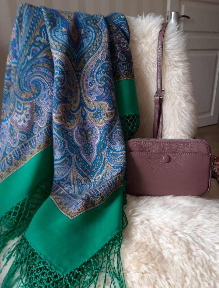 Ванесса! Очень удачно! Красиво! Форма сумочки повторяет округлые мотивы на шали.