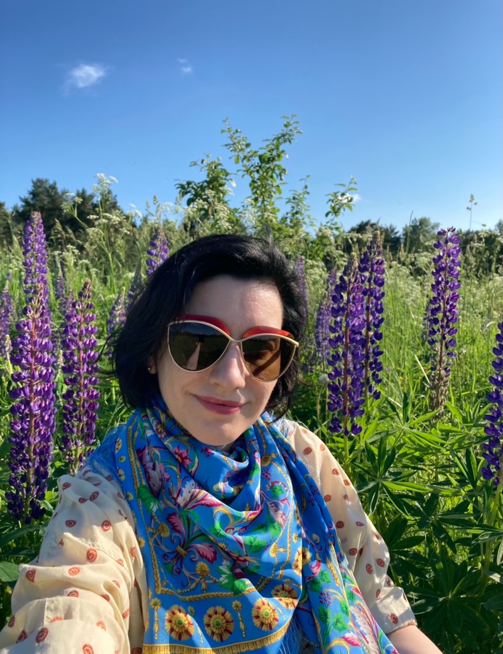 Nathalie_Наташа, принесла запах лугов, голубое небо и летнюю красоту в примерочную! Шикарная шелковая шаль! Очень душевная фотография! От одного названия шелк, чувствуется роскошь! Красавица наша! ^%
