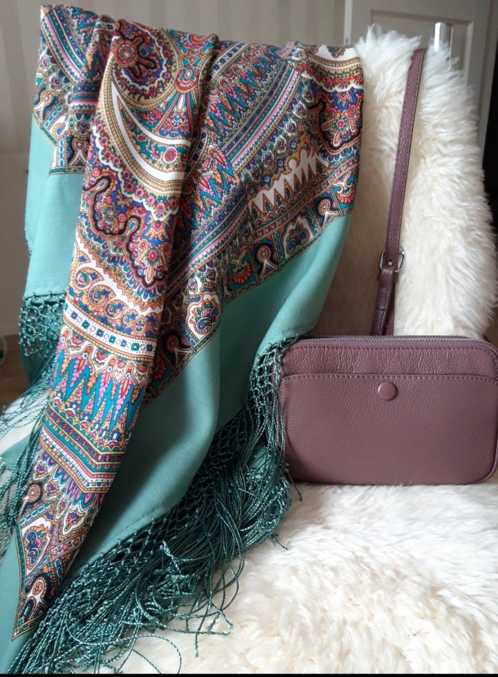 Ванесса! Очень удачно! Красиво! Форма сумочки повторяет округлые мотивы на шали.