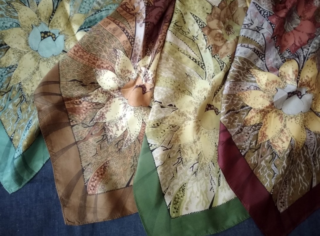 Фотографировала в магазине в Пензе, прямо на витрине, немножко помят платок, его край был заправлен.
