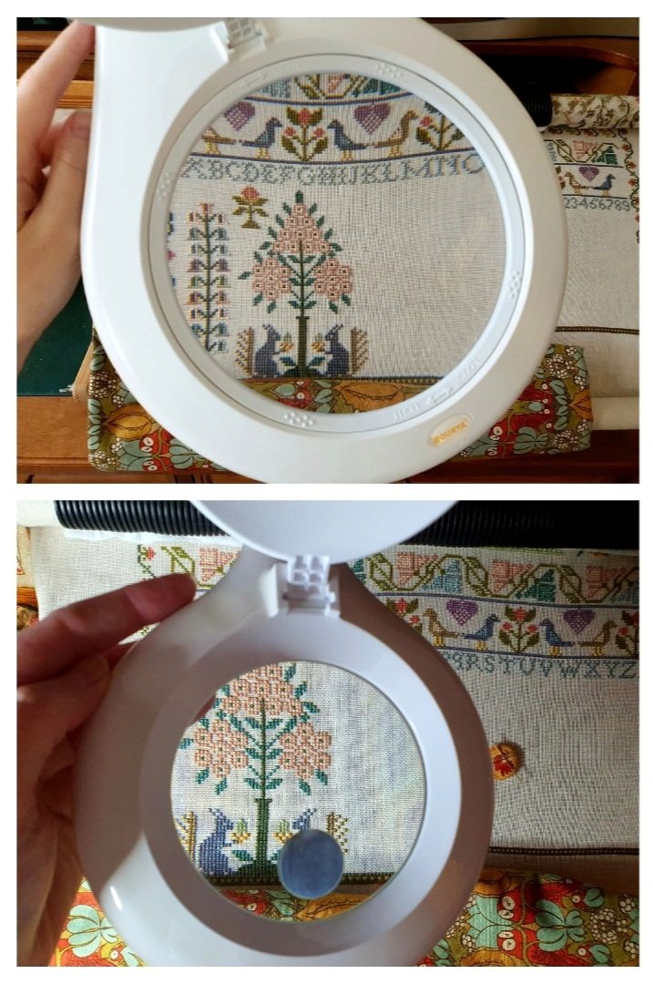 Я вышиваю с 13-ти см диаметром. На гибкой основе, креплю на станок (прищепка). Легкая и без малюсенького стеклышка сильного увеличения, которое так отвлекает.