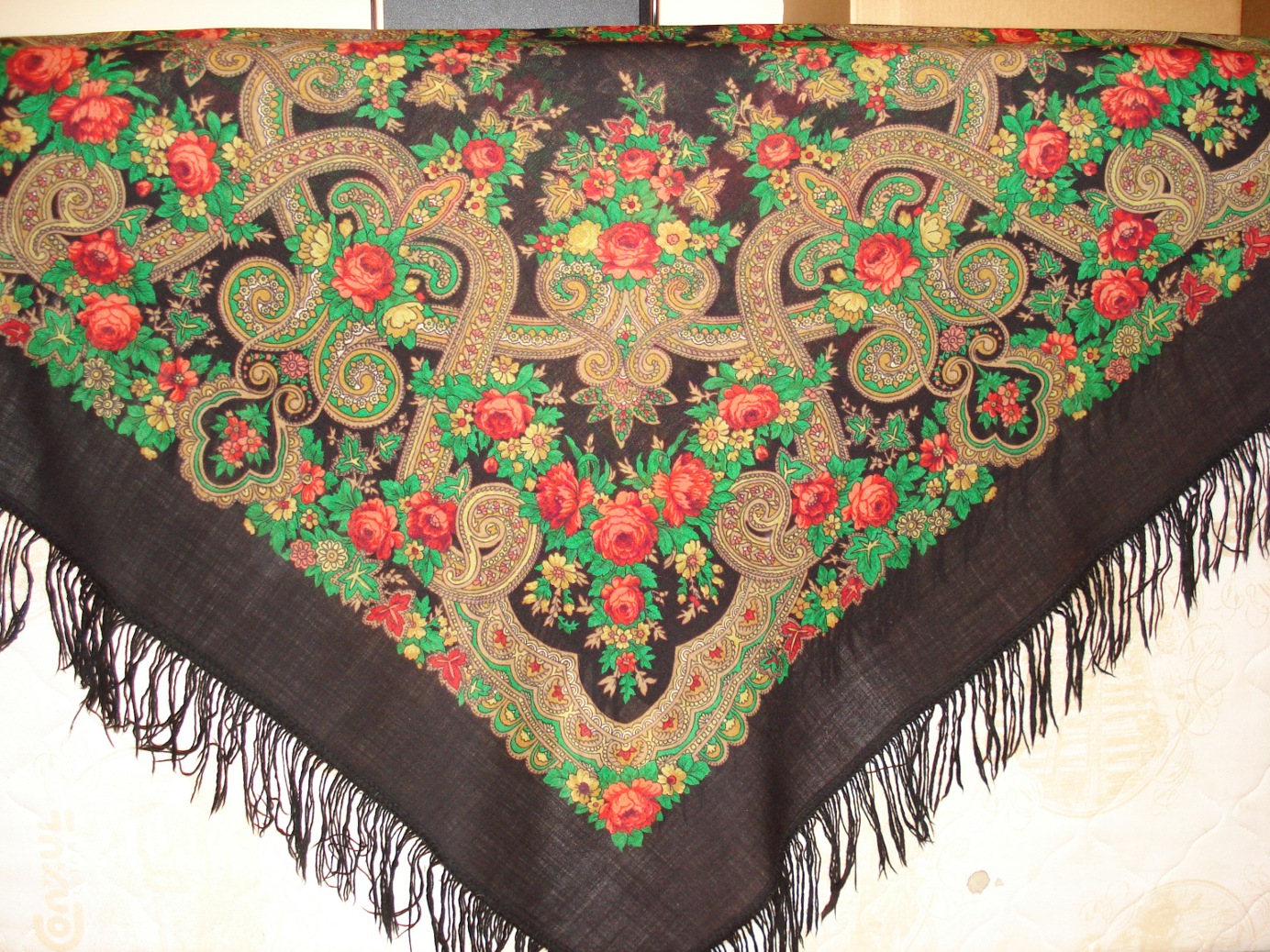 Уважаемые эксперты, платок 125х125, по словам хозяйки "куплен при Советской власти еще", шерсть очень тонкая, просто шерстяной шифон, не стирался, почти не ношен, т.е. цвета родные. Видится очень знакомым, но не могу опознать, мне кажется, у нас такой или очень похожий был, пока не нашла в наших фото, заблудилась.